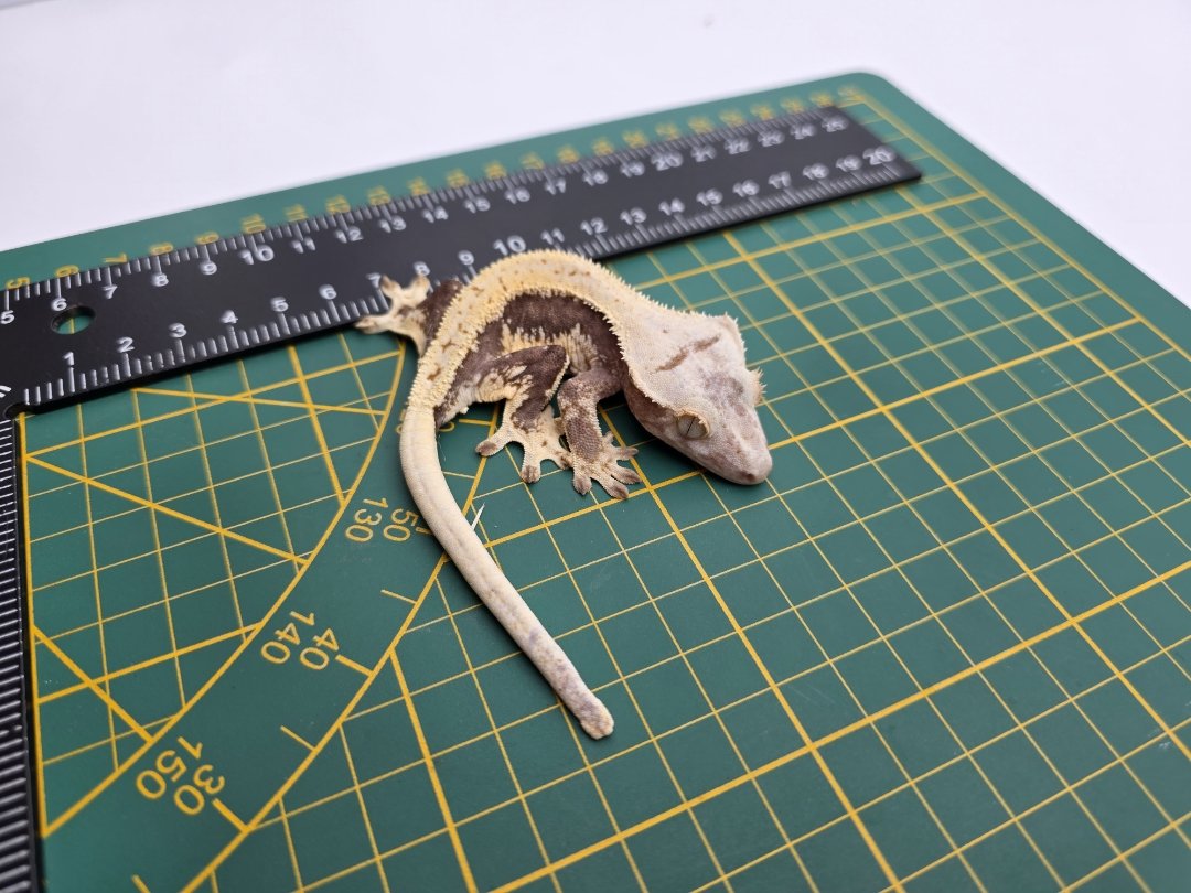 Correlophus ciliatus, femelle née en 2025, « Lilly white tricolor drippy blush », Nom/référence : AVIDA Enregistré par photos